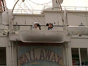 | ボートで上がっていくミッキーとミニー。何かを思い出しませんか? |