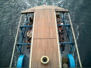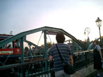 | 橋の上から下をくぐる船を |