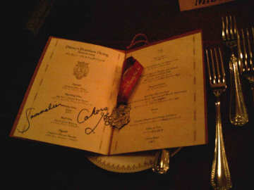 一皿目。オマール海老と柿とキャビアって合うのね。オリーブには秘密が・・・ |