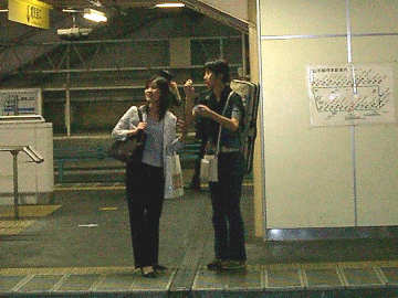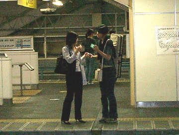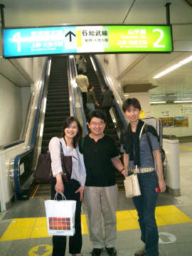 | ホームの間の山手線を通しておのちゃんが見えます(えりちゃん撮影) |