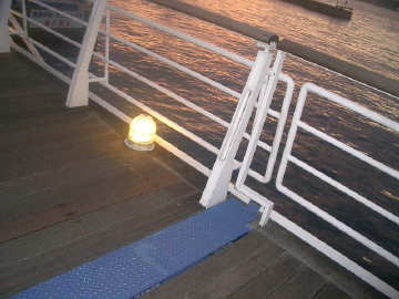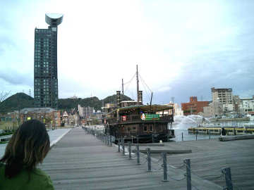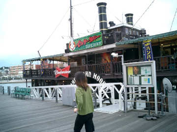 係留された中にレストランのある船。氷川丸みたいなモンかね。ステーキのにおいでお腹がすき |