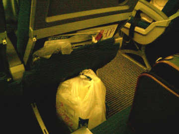 乗り込んだANA272便で、太刀魚を汁が出ると困るから預かってくれと云ったら、最初スッチーに拒否されて(やさしくお願いをしないで)ぶちぶち文句云ってたら、隣の席が空いてるからそちらへどうぞお置きくださいといわれて置いたところ。最初っからそう言いなさいよね |