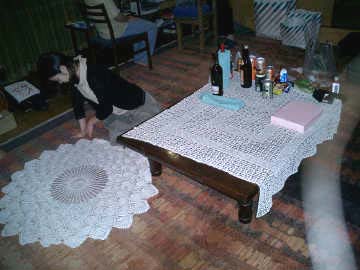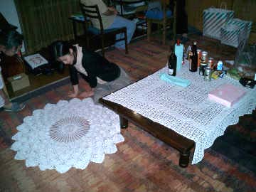 あきる野大国王宮へ移動。 なおちゃんのおかあさんの手作りレースに反応します |