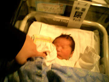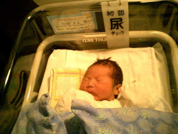 夜中の2時に母は病院に入り、朝、父が来て陣痛が始まるも、まだ吾輩は生まれないだろうと ふんで、治療にいき、3人済まして11:30に戻ると、吾輩は既に生まれていたのである。
