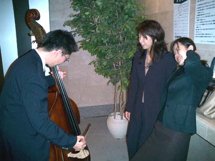 現在、午前零時十五分。マンションのエントランスにて、ベースを弾くおばかたち。