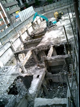 池袋西口の東方会館が、昨年暮れに営業を中止し解体作業が進む4月の末、工事囲いに「建築計画のお知らせ」が掲示された。