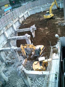 池袋西口の東方会館が、昨年暮れに営業を中止し解体作業が進む4月の末、工事囲いに「建築計画のお知らせ」が掲示された。