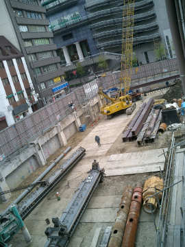池袋西口の東方会館が、昨年暮れに営業を中止し解体作業が進む4月の末、工事囲いに「建築計画のお知らせ」が掲示された。