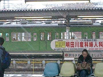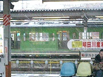 | 拝島の駅で見かけた203系の3000台車両。見た瞬間にABEちゃんが「語っちゃうよ!」とはいえ、自粛して聞き損ないました。先生!煌めきも書いてくださいね。 |