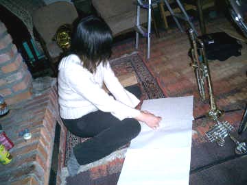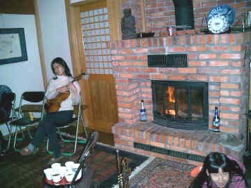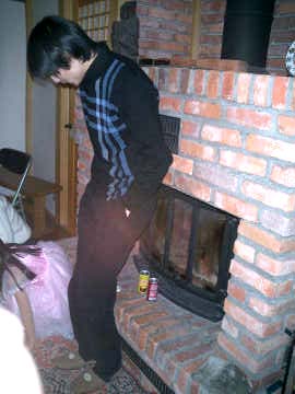 jokerは窓ガラスに映った暖炉の炎を撮ってます。まるで、外の木が燃えてるみたい(撮ってる動画と暖炉の炎) |