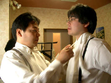 ファンファーレを決めます。付いてるのはかなちゃんの持ってきたニモ?だっこちゃんみたいになってます |